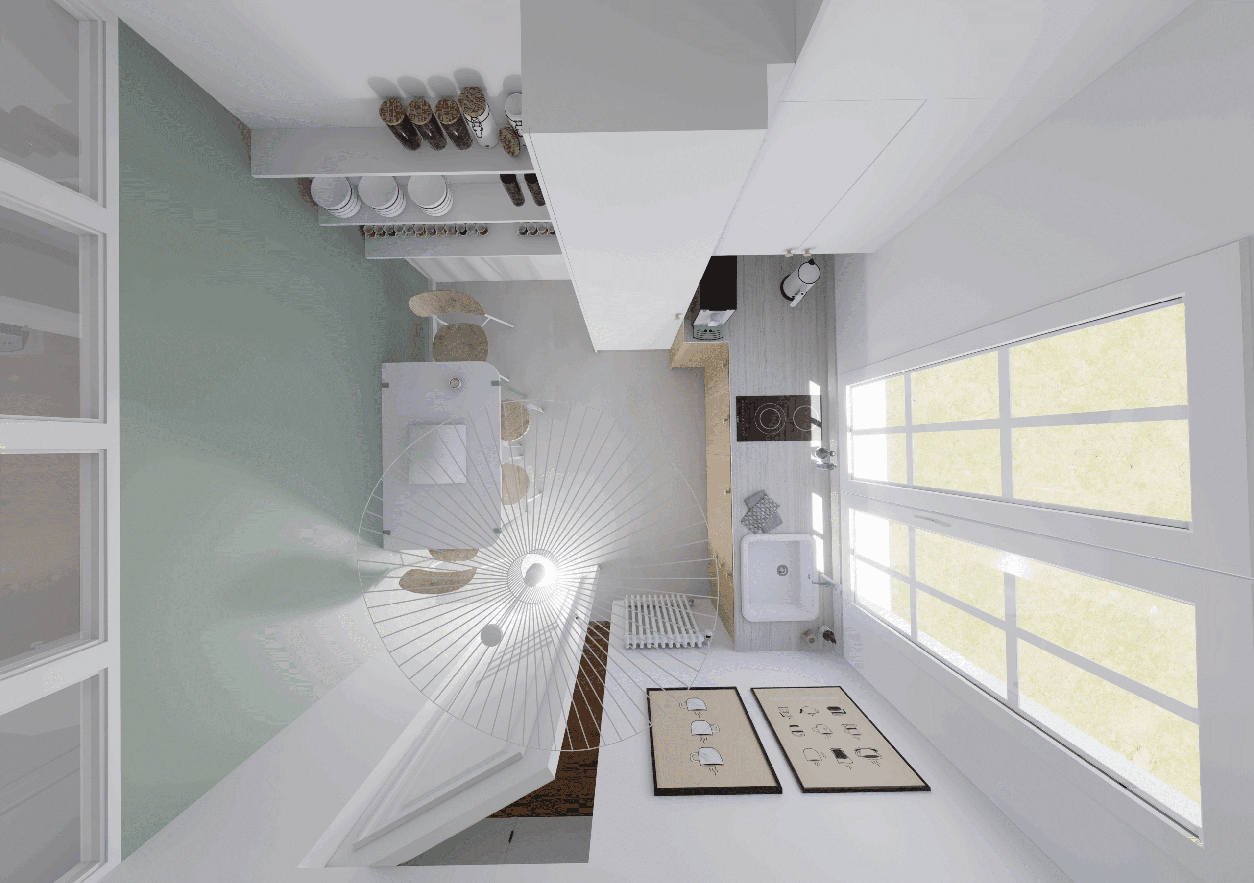 L’objectif principal était d’exploiter chaque centimètre disponible pour transformer cette petite surface en un espace pratique, esthétique et confortable. Le projet visait à :