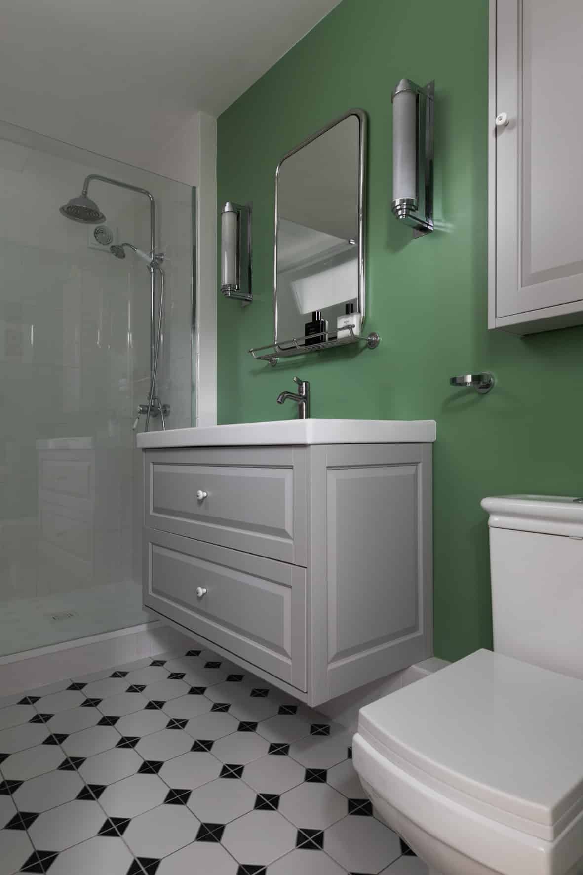 Pour commencer, la salle de douche principale a été repensée autour d’une nouvelle ambiance art déco. Ce choix a permis d’ajouter du style et une vraie personnalité à la pièce.