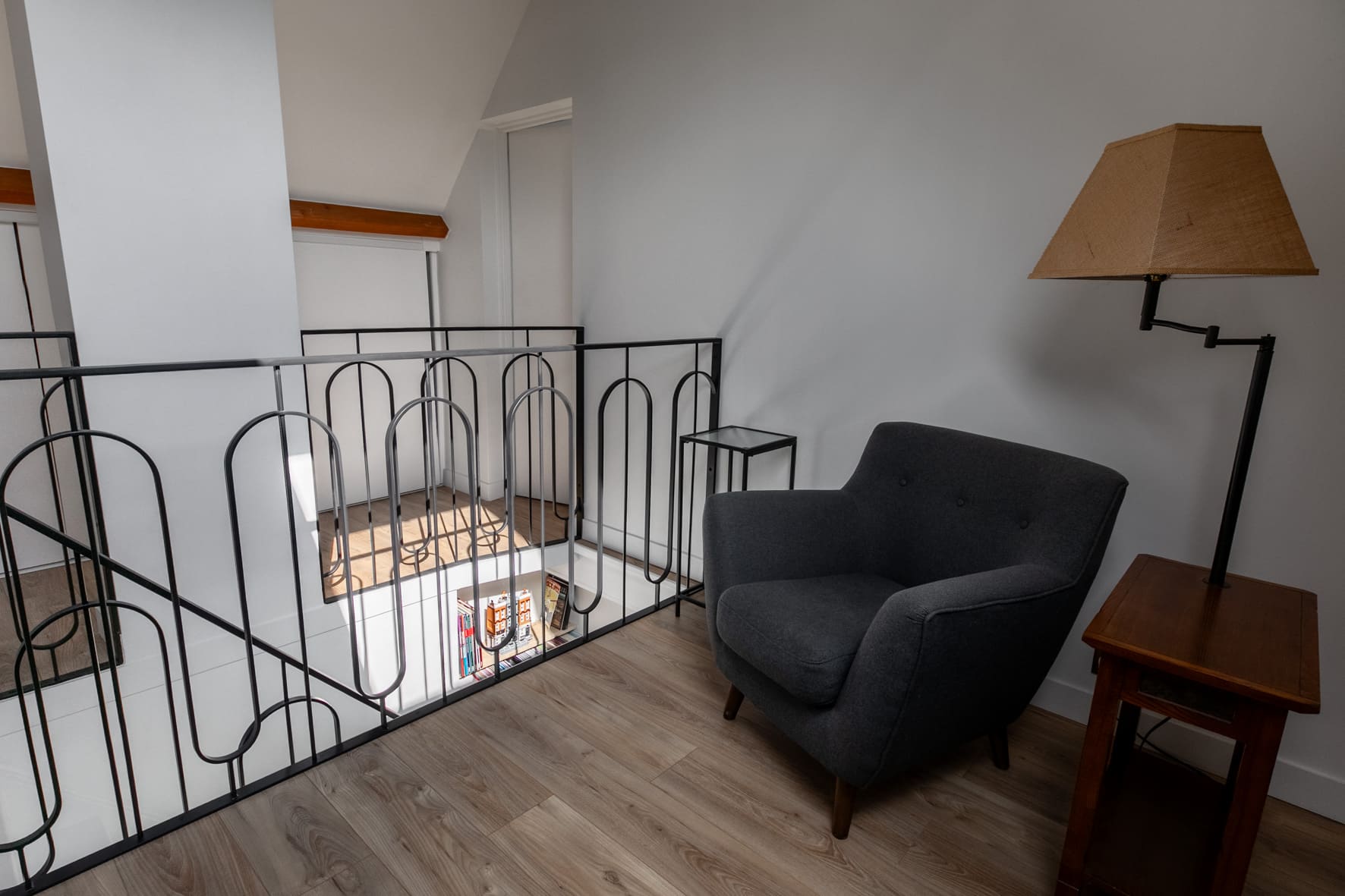 Ensuite, les escaliers du triplex, auparavant recouverts de moquette, ont été entièrement repris. La peinture blanche a modernisé l’ensemble et a accentué la luminosité naturelle.